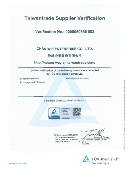 2018年榮獲德國萊因(TÜV Rheinland)頒發「企業營運能力認證」