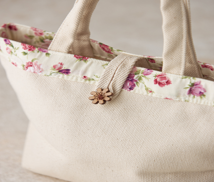 無染胚布的純淨布料、細膩的車工、優雅的薔薇花布,在素雅中帶點風味。